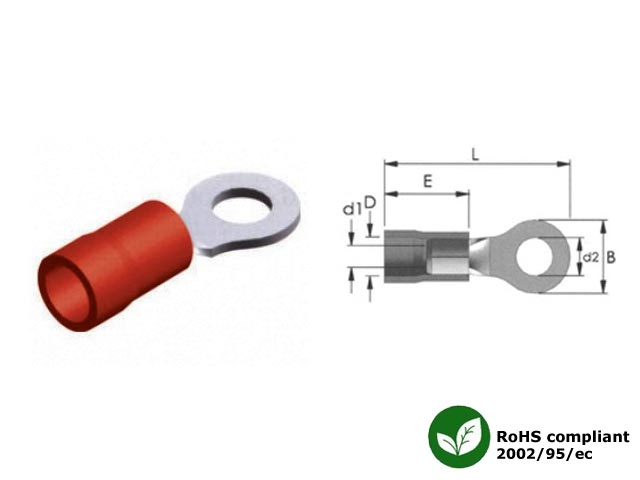 Ακροδέκτης οπής κόκκινος Φ5.3 L=21.0 B=8.0 E=10. Ελάχιστη ποσότητα παραγγελίας 100τμχ.