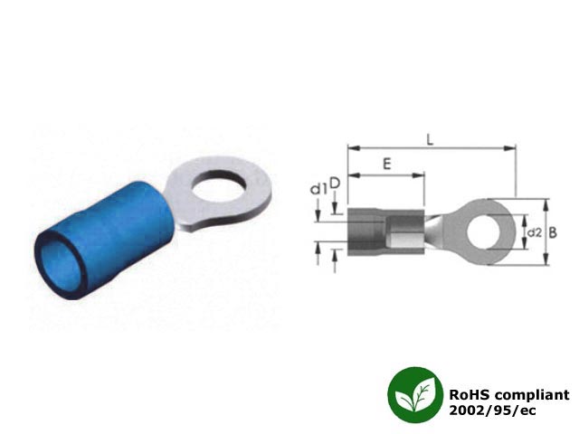 Ακροδέκτης οπής μπλε Φ4.3 L=22.0 B=8.5 E=10. Ελάχιστη ποσότητα παραγγελίας 100τμχ.