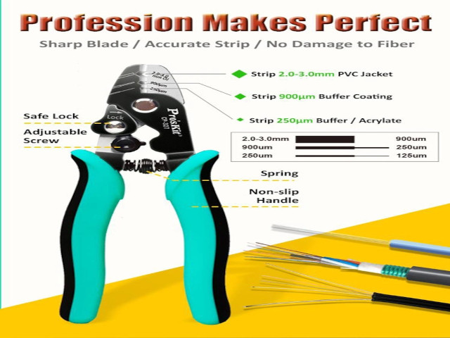 PROSKIT απογυμνωτής καλωδίων οπτικών ινών CP-327, 162mm.Απογυμνωτής καλωδίων της PROSKIT, κατάλληλος για την απογύμνωση καλωδίων οπτικών ινών. Διαθέτει 3 οπές απογύμνωσης για την ακριβή απογύμνωση των καλωδίων οπτικών ινών, προσφέροντας εξαιρετικό αποτέλεσμα, χωρίς φθορές.