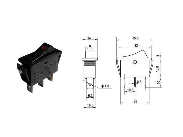Διακόπτης rocker 3p με λυχνία παραλ/μμος on-off 16A/2