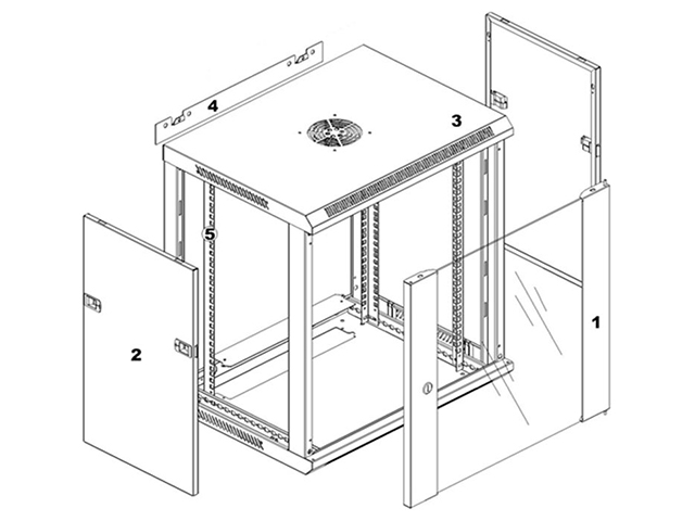 Rack επιτοίχιο κλειστό 15u με πλαϊνά τοιχώματα και πόρτα
