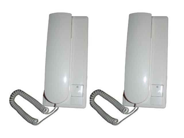 Ενδοεπικοινωνία με 2 τηλέφωνα. Κατάλληλο για αμφίδρομη επικοινωνία μεταξύ 2 σημείων. Αποτελείται από ένα σταθμό και ένα υποσταθμό, οι οποίοι συνδέονται μεταξύ τους με απλό καλώδιο 2 αγωγών (περιλαμβάνεται). Ιδιαίτερα απλό στην χρήση. Απλά πατήστε το πλήκτρο ειδοποίησης που διαθέτουν και οι δύο μονάδες, ώστε να ειδοποιηθεί ο χρήστης στην άλλη πλευρά, και σηκώστε το ακουστικό για να συνομιλήσετε. Το κάθε ένα από τα δύο τηλέφωνα μπορούν να τροφοδοτηθούν από 4 μπαταρίες ΑΑ το καθένα (δεν περιλαμβάνονται) ή από εξωτερικά τροφοδοτικά 6V (δεν περιλαμβάνονται). Είναι κατάλληλα για επιτραπέζια χρήση ή για στήριξη σε τοίχο.