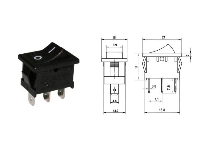 Διακόπτης rocker μίνι ON-ON 3P 250V/6A