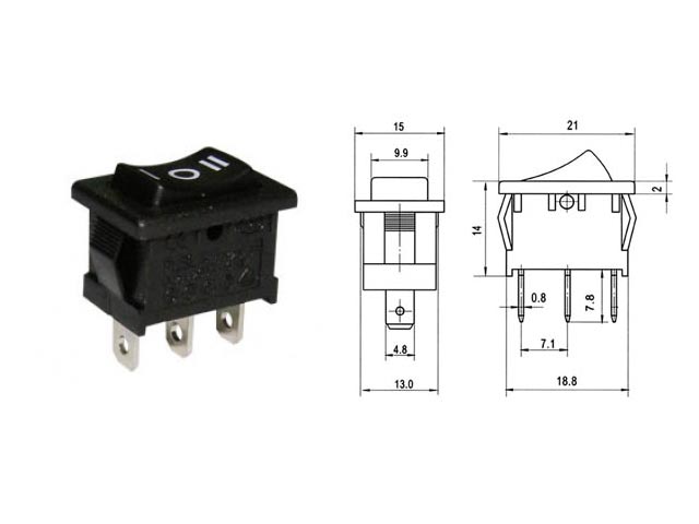 Διακόπτης rocker μίνι ON-OFF-ON 3P 250V/6A