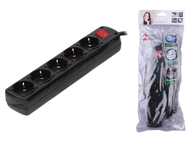 Πολύπριζο με διακόπτη, 5 θέσεων, σούκο, μαύρο