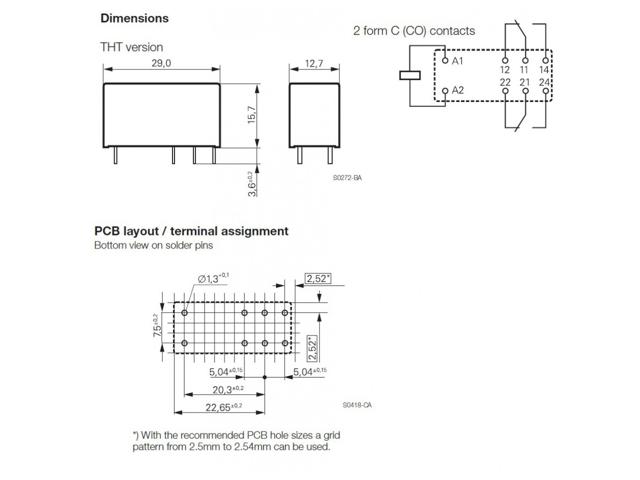 ΡΕΛΕ RT-424012 RELAY 2P 12V 8A DPDT NO/NC