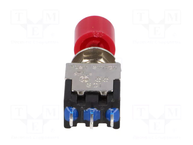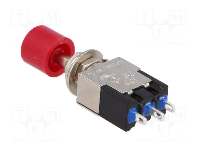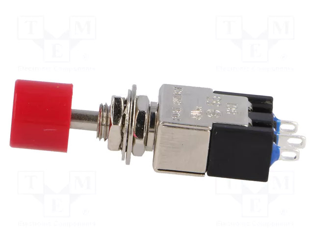 Διακόπτης μίνι τύπου μπουτόν ON-ON SPDT 3Α/250VAC με κόκκινο καπέλο.