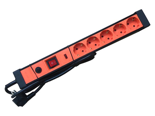 Πολύπριζο 5 θέσεων με προστασία. Χρώμα Πορτοκαλί RAL 1655C. Καλώδιο H05VV-F3G1,5 3x1,5. Μήκος 1.5m.