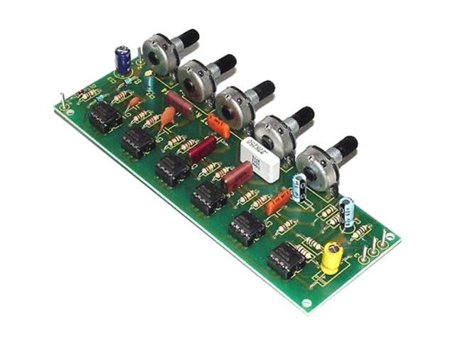 Ένα EQUALISER με πέντε περιοχές συχνοτήτων. Μια κατασκευή για όσους θέλουν να ακούν πραγματικό Hi-Fi, και να πετύχουν την καλύτερη δυνατή απόκριση συχνοτήτων με την ελάχιστη παραμόρφωση. Ιδανικός για το αυτοκίνητο. Περιοχές ρύθμισης: 60 Hz, 250 Hz, 4,000 Hz, 16,000 Hz. Tροφοδοσία: 12V DC. Μέγ. ρεύμα: 100mA. Μέγ. έξοδος: 1Vpp