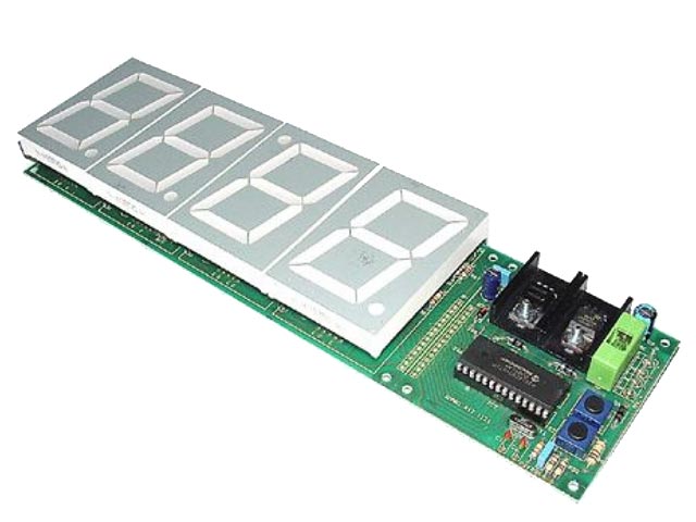 Ένα μεγάλο ψηφιακό ρολόι είναι πάντοτε χρήσιμο σε κοινόχρηστους χώρους όπως λέσχες, σχολεία, φροντιστήρια, καταστήματα, κ.λ.π. Βασισμένο στον πασίγνωστο μικροελεγκτή PIC16C57 που εγγυάται ακρίβεια και αξιοπιστία. Η κατασκευή του είναι αρκετά εύκολη. Απεικονίζει την ώρα σε τέσσερα μεγάλα φωτεινά κόκκινα αριθμητικά ψηφία, που είναι ορατά από 20 μέτρα. Η ρύθμιση του είναι πολύ εύκολη μέσω κουμπιών. Τάση τροφοδοσίας: 12-14 V DC. Κατανάλωση 1Α max. PCB 75X275mm.