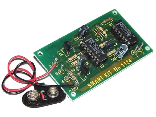 Ένα ηλεκτρονικό κουδούνι κατάλληλο για τοποθέτηση στο σπίτι. Σε συνεργασία με ένα ρελέ κλήσεως τηλεφώνου μπορεί να συνδεθεί με το τηλέφωνο. Τάση τροφοδοσίας: 9-12V DC.