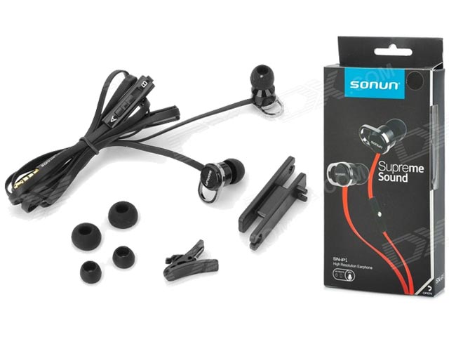 1x earphone (120cm), 1x clip, 1x cable organizer, 4x silicone earbuds