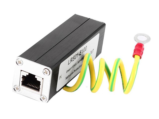 Προστασία υπέρτασης σε γραμμές δικτύων, με βύσματα Ethernet RJ-45. Ιδανικό για την αντικεραυνική προστασία δικτύων υπολογιστών, δικτύων μετάδοσης δεδομένων, router, κλπ. Απαιτείται απαραιτήτως σύνδεση με γείωση για την εκφόρτιση σε περίπτωση κεραυνού.