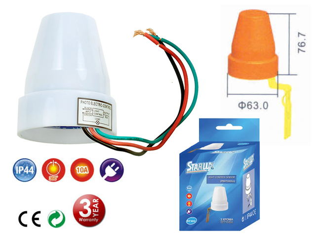 Αισθητήρας ημέρας/νύχτας 10A/230V AC, 5-50 Lux, λευκός