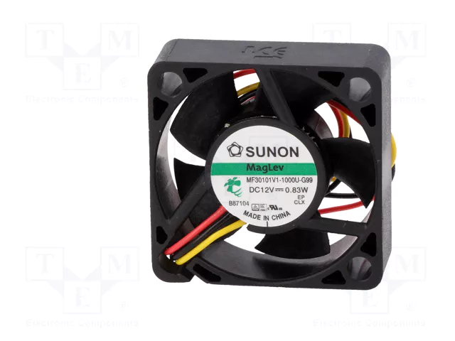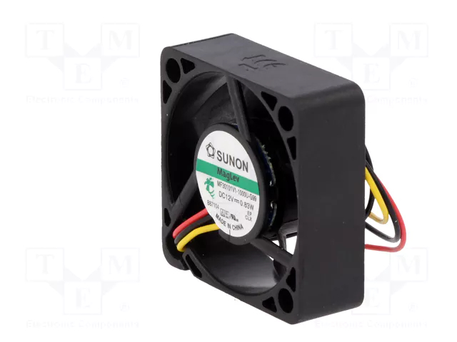 Ο Sunon MF30101V1-1000U-G99 είναι ένας συμπαγής αξονικός DC ανεμιστήρας 30 x 30 x 10 mm, ιδανικός για αξιόπιστη ψύξη σε εφαρμογές με περιορισμένο χώρο. Λειτουργεί στα 12 VDC, προσφέροντας παροχή αέρα έως 5.5 CFM (9.3 m³/h) με χαμηλό επίπεδο θορύβου μόλις 23 dBA, κατάλληλο για αθόρυβα συστήματα.
