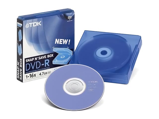 DVD-R 4,7GB ταχύτητας 16x (10 τεμάχια) σε ειδική θήκη SNAP N' SAVE απο την TDK, σε χρώμα γαλάζιο.