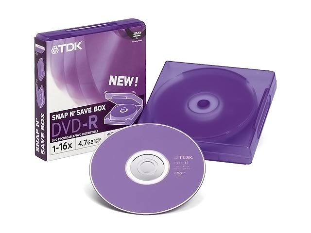 DVD-R 4,7GB ταχύτητας 16x (10 τεμάχια) σε ειδική θήκη SNAP N' SAVE απο την TDK, σε χρώμα μώβ.