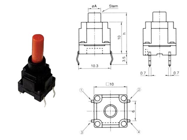 Tact switch 10x10, 23.2mm, 180gf, στεγανο