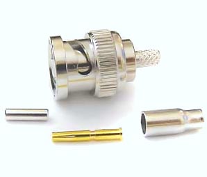 BNC αρσενικό βίσμα crimp για καλώδιο RG174/U, reverse.