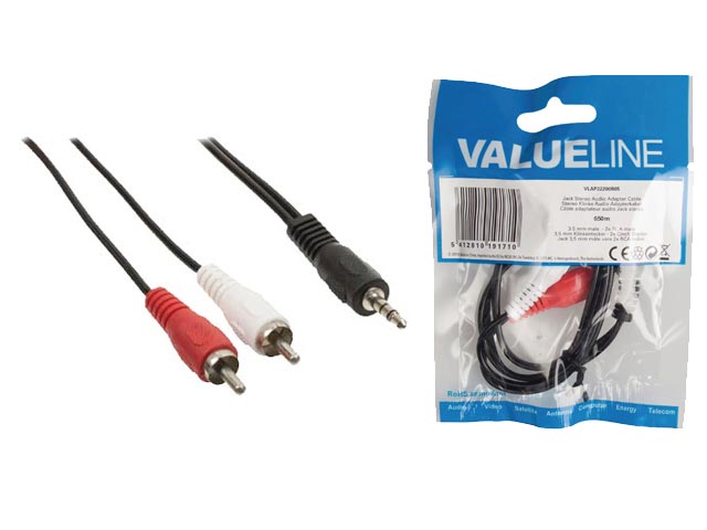 Καλώδιο 2x RCA αρσενικό - 3,5mm αρσενικό, Stereo, 0.5m