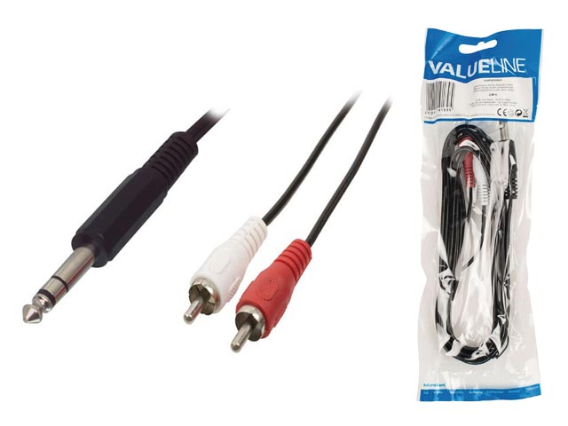 Καλώδιο ήχου Stereo 6.35 mm αρσ. - 2xRCA αρσ, 2m,