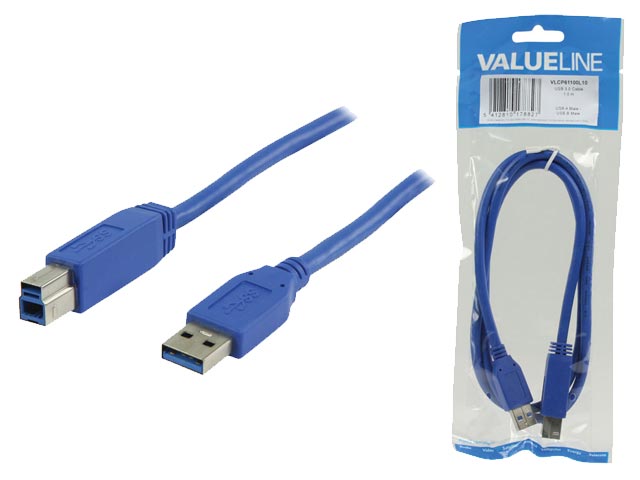 1m Καλώδιo USB 3.0 A αρσ. - USB B αρσ, 1m, μπλε