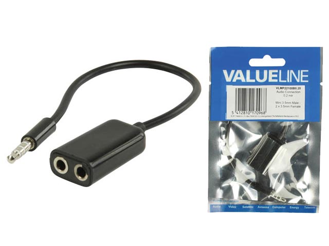 Splitter ακουστικών και ηχείων που σας επιτρέπει να συνδέσετε δύο σετ ακουστικών 3,5mm με μήκος 0,20m.