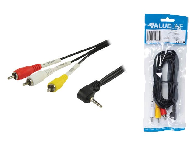 Καλώδιο 3.5mm αρσ. γωνιακό - 3x RCA αρσ. 2m