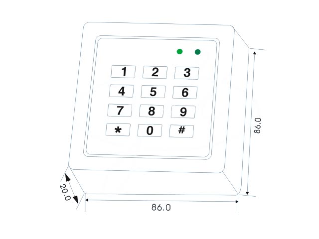 Πληκτρολόγιο με RFID reader μιας πόρτας, αδιάβροχο. Παρέχει έλεγχο κάρτας, κωδικού πρόσβασης, κάρτας μαζί με κωδικό πρόσβασης σε ένα πληκτρολόγιο.