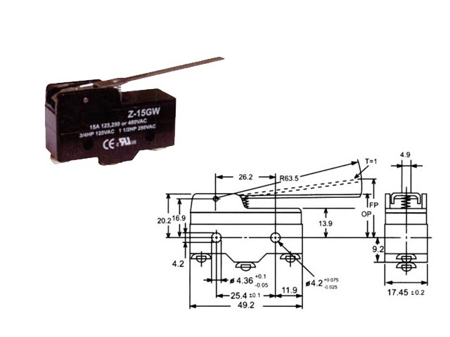 Τερματικός διακόπτης 15A με μακρύ έλασμα